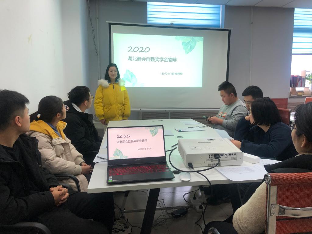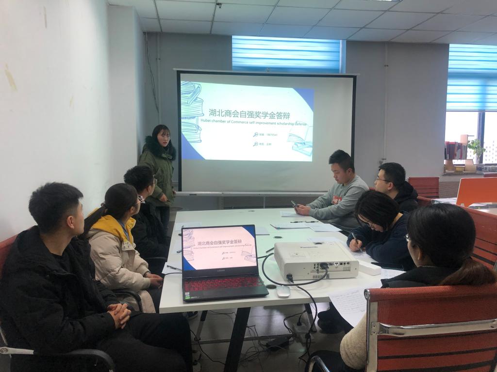 2020年12月15日上午十点,在主楼711,大数据学院勤工部举办了关于评选2020/2021学年山西省湖北商会自强奖助学金的答辩。本次答辩评委由老师和学生组成。
