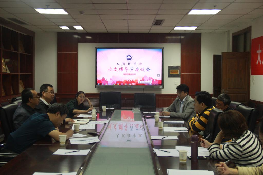 在校庆七十七周年之际,为了进一步做好校友工作,推动大数据学院校友辅导员育人模式的开展,9月16日上午8:30,我院在919举办校友座谈会。出席本次座谈会的有大数据学院党委书记郭书杰、院长韩燮、院党委副书记杨晓东以及返校校友马映冰、杨向荣、郑卫东、肖宁、潘安辉。
