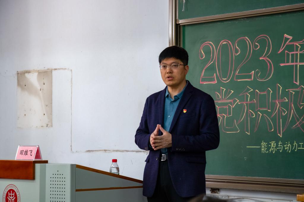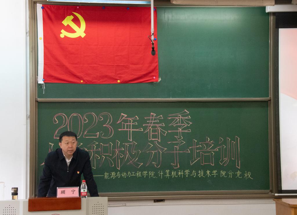 随后能源与动力工程学院党委书记顾宁为学员们讲解《学党史不忘来时路,跟党走奋进新征程》,他为学员们讲述中共一大到中共二十大之间的每个重要会议,详细讲解了每次会议的重要内容和历史意义。