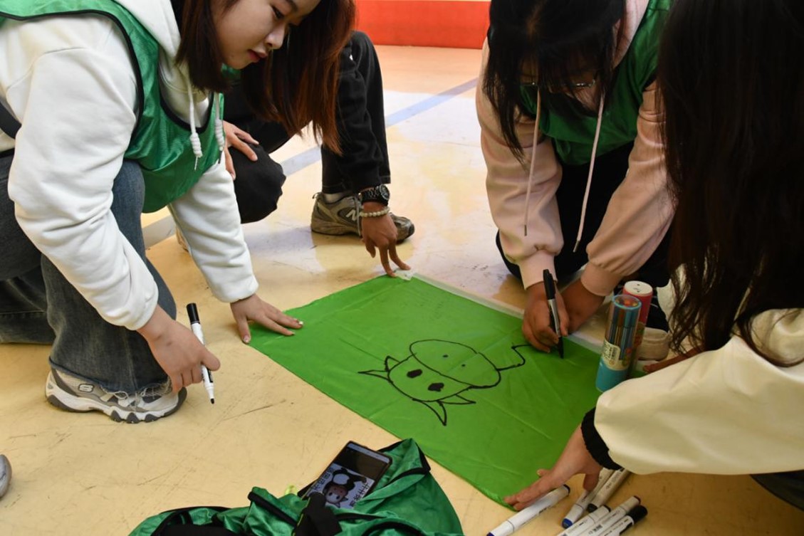 该活动分为上午、下午两个阶段。上午,负责人首先进行了两个小游戏,一个用来热场,一个进行随机分组。在之后的十五分钟内,小组成员穿好队服,讨论出队名,口号,队旗,队形,并且需要将队旗画出。在这一环节中,相互陌生的队员没有默然旁观,而是积极行动,尽己所能。
