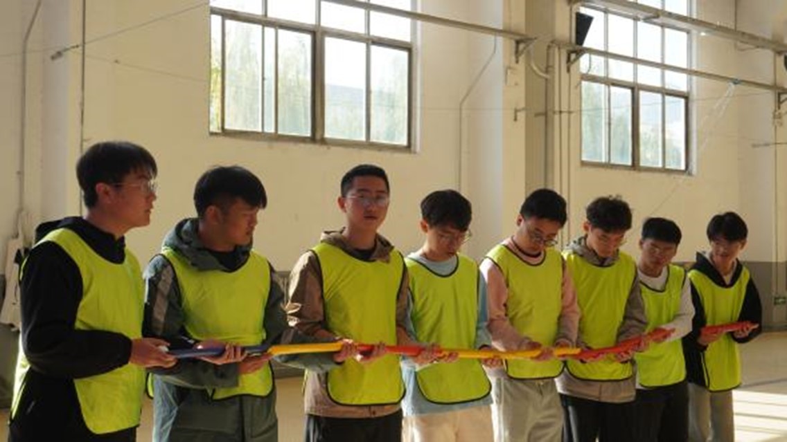 “水到渠成”需要将一只小球从起点运送到终点之后再运送回去,每个人手中只有一小节管道,如果小球落地则重新开始。在一次次失败中,大家汲取教训,不再急于速度,而是稳中求胜。这两个游戏旨在考验团队的合作能力,组长的组织能力,快速解决问题的能力。