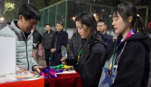 比赛结束,我院女篮荣获本届新生杯季军,是对过去的肯定,更是对未来的决心,在颁奖环节,计算机科学与技术学院党委副书记兼副院长杨晓东老师和团委书记周宇宏老师来到现场,热切地为女篮队员们颁奖,并送上了真挚的祝福。