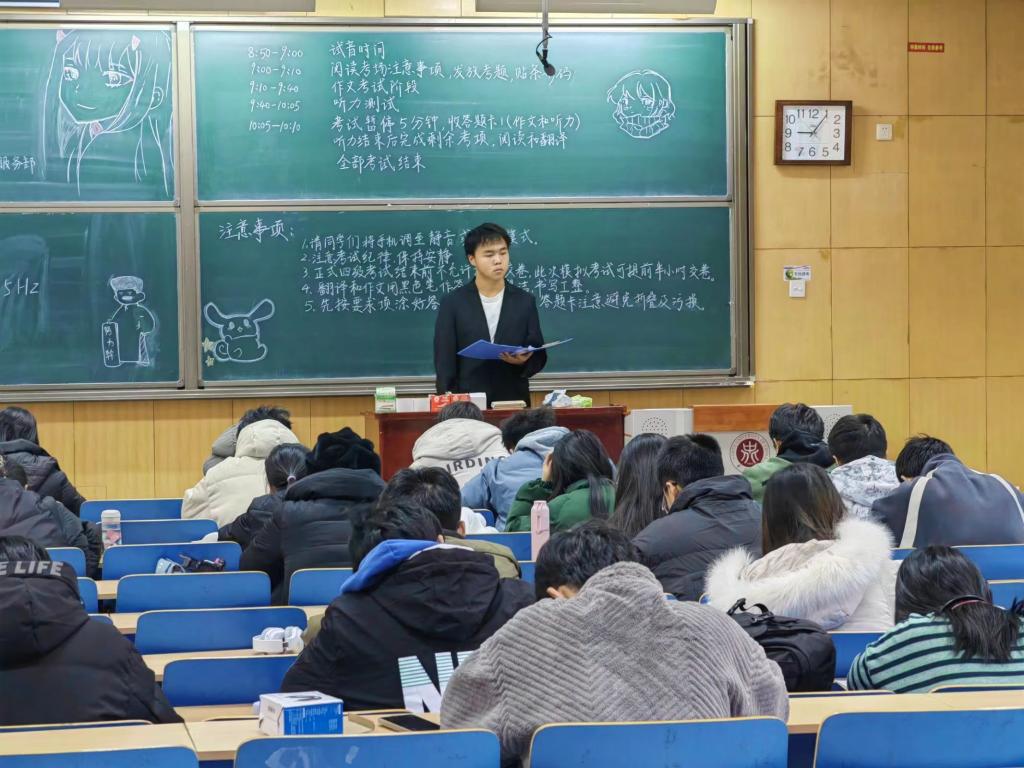 考试当天,工作人员提前来到教室,布置好考场,迎接同学们的到来。开考前,组织同学们有序签到,开考时,营造良好的考试氛围,让同学们认真答题。考试结束后,我们还为同学们提供了试题答案及听力音频,而对于因为一些原因没有参加考试的同学,我们也为他们提供了考试试题。整个考试过程秩序井然,严格模拟了四级考试的全部流程,展现了计算机科学与技术学院学生的良好素质。
