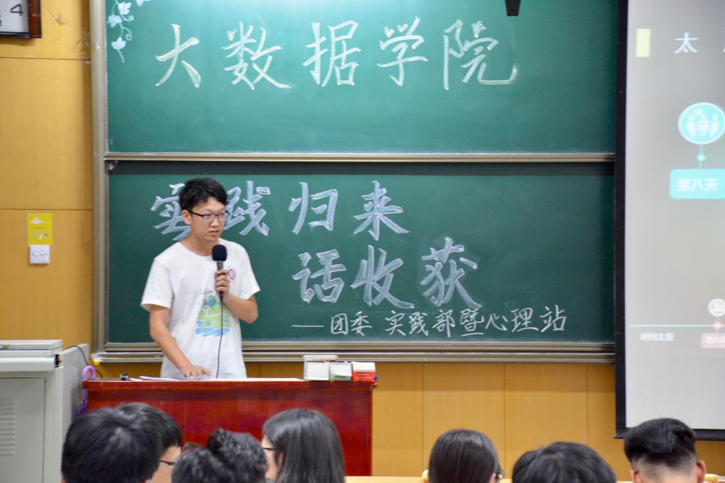 2017年9月29日晚7点30分,由中北大学大数据学院团委实践部主办的“实践归来话收获”活动在11508H教室如期举行,出席本次活动的嘉宾有校实践部部长卜德帅、校学生会后备主席葛宏盛以及各院实践部部长。