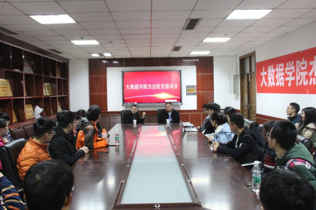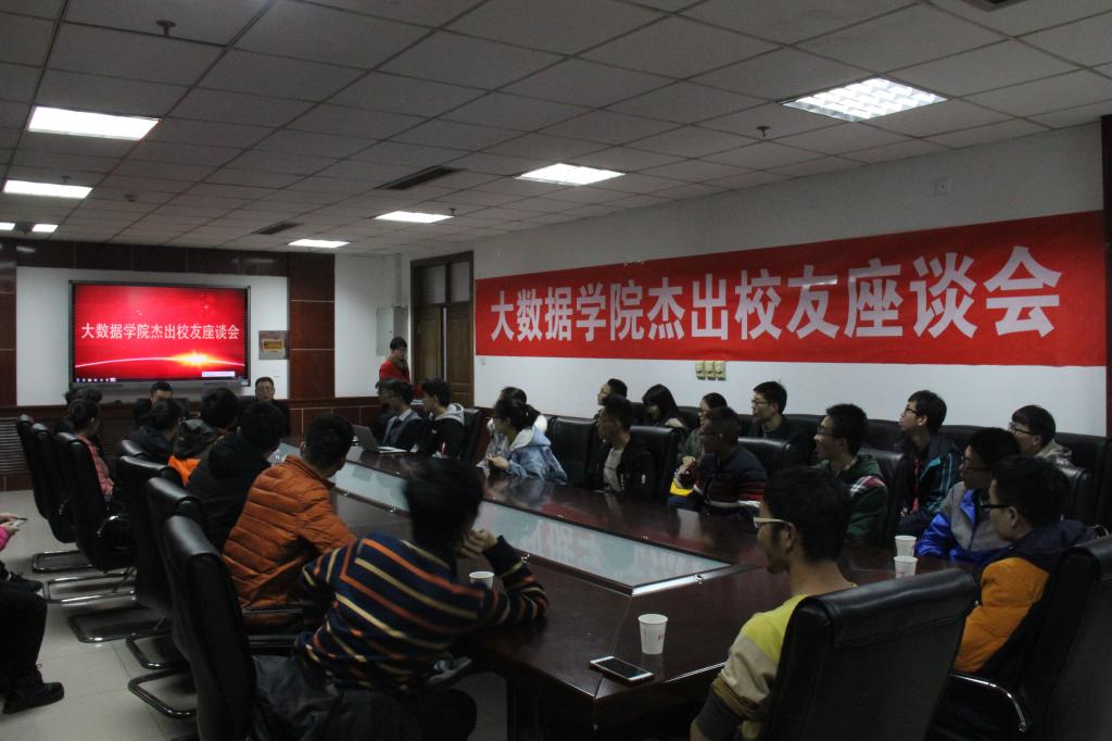 2017年11月 23日14时30分,大数据学院杰出校友座谈会如期召开。此次座谈会由龙测科技创始人兼CEO师江帆主讲,君和源投资公司合伙人及山西维尔富投资公司投资顾问潘安辉进行补充。此次座谈会主要针对我院学生最关心的就业问题展开,旨在从过来人角度帮助他们答疑解惑。