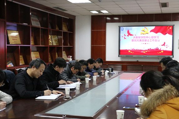 12月21日下午,大数据学院组织召开中心组学习及党风廉政建设工作会议,会议由院党委书记郭书杰主持,并邀请校纪委委员桂志国参加,学院院长韩燮、副院长秦品乐、党委副书记杨晓东及党委委员、各支部书记和全体科级干部参加学习。