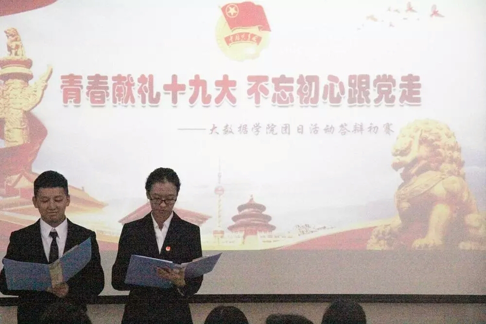 为了引导广大青年坚定地跟党走中国特色社会主义建设的理想信念,深入学习宣传贯彻党的十九大精神,同时响应党的十九大号召,大数据学院于2017年11月23日在15106成功举办了以“青春献礼十九大,不忘初心跟党走”为主题的团日活动答辩大赛。
