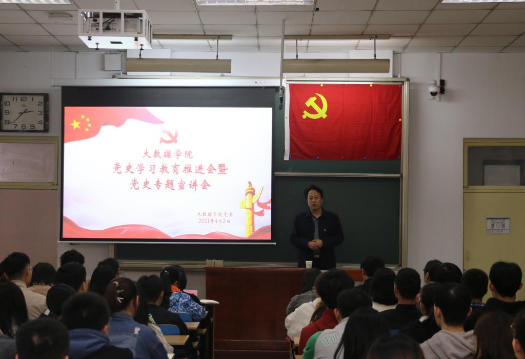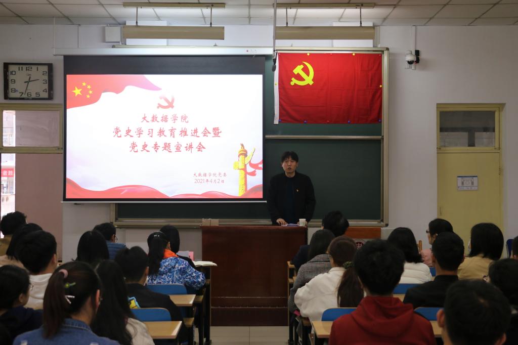 4月2日14:30,大数据学院党史学习教育推进会暨党史专题宣讲会在11206H举行,大会邀请了马克思主义学院教师张云霞主讲,学院党委委员及师生党员参会,会议由院党委书记郭书杰主持。