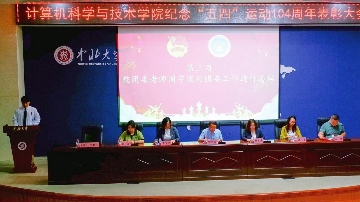 青春逢盛世,奋斗正当时。为深入学习贯彻党的二十大精神,传承并发扬五四精神,表彰先进和树立典型,以榜样的精神号召广大青年担当时代使命,计算机科学与技术学院于2023年5月25日下午在瑾瑜国际会议中心学术报告厅召开纪念“五四”运动104周年表彰大会。出席本次大会的领导和嘉宾有院党委书记喻华兵,学生科科长魏春燕,团委老师周宇宏,辅导员孟姣、卫星以及王盼老师,学院获奖集体和优秀个人代表、大一大二各团支部团员青年代表参会。