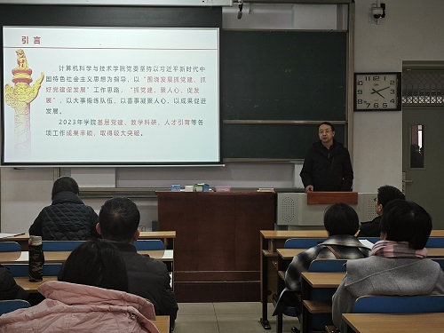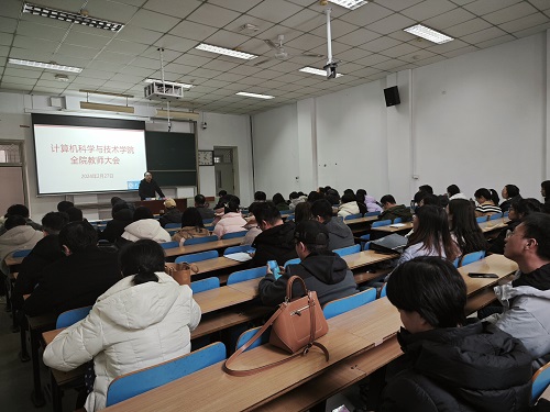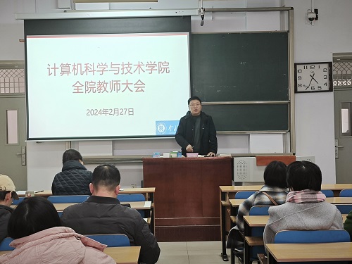 2024年2月27日下午,计算机科学与技术学院在主楼11206H召开全院教职工大会。会议由学院党委书记喻华兵主持。