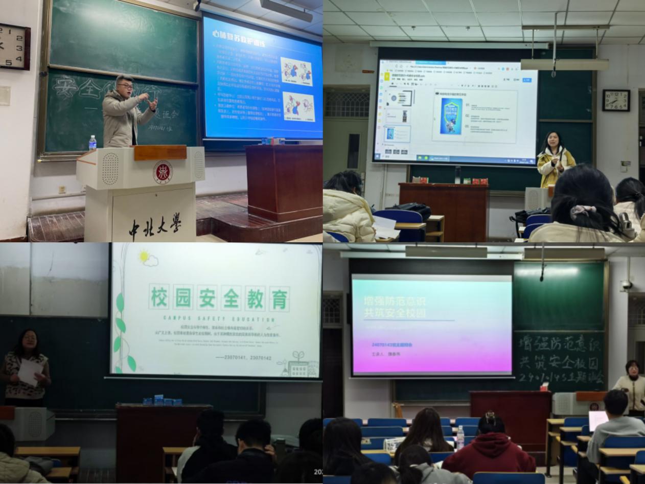 本学期以来,我院组织了以“增强防范意识 共建安全校园”为主题的系列班会。各班级通过讨论、知识竞赛、案例分析等形式,深入探讨了校园安全的重要性。班会不仅覆盖了消防安全、网络安全、人身安全、财产安全等传统领域,还特别强调了心理健康和实验室安全。通过主题班会,学生们对安全知识有了更全面的认识,也为后续的安全教育活动打下了坚实的基础。