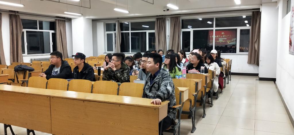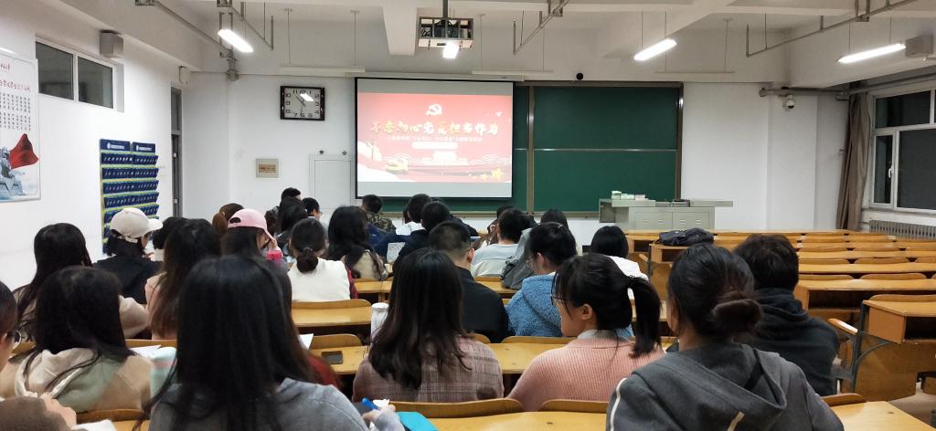 学生党员聚精会神观看,聆听,认真学习节目中各榜样的精神。