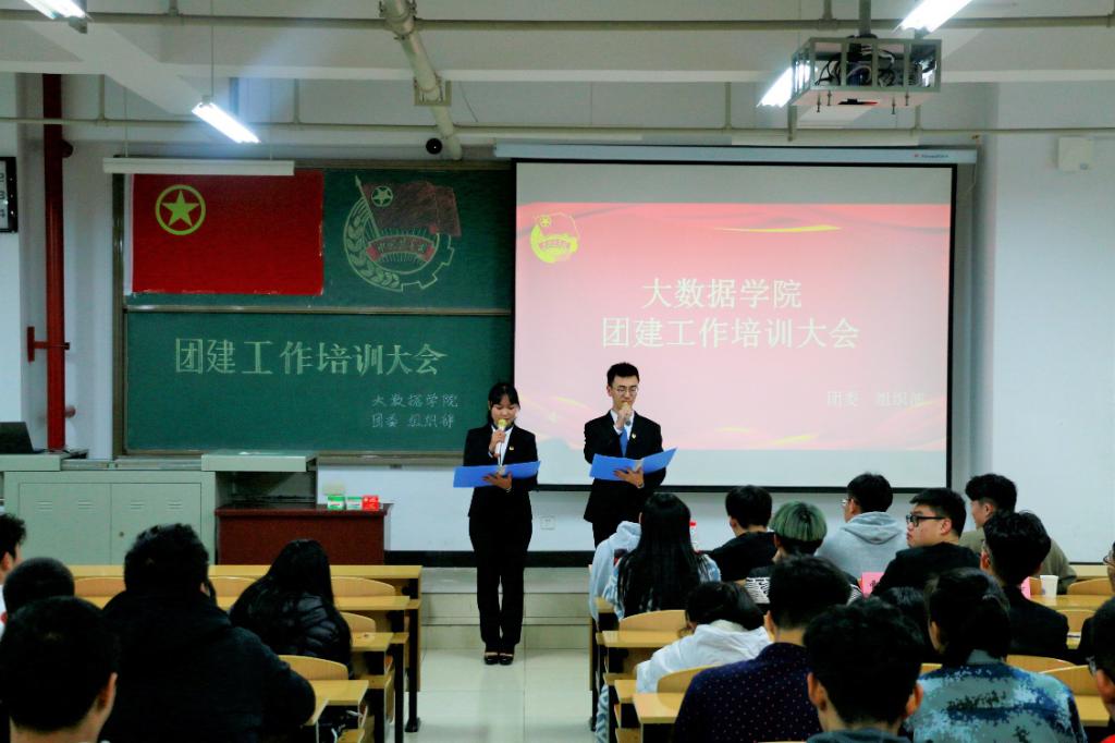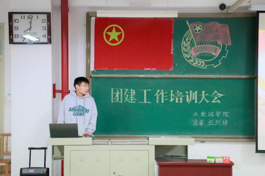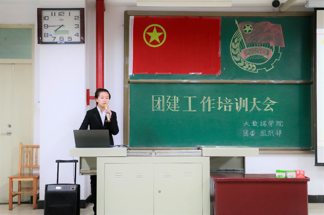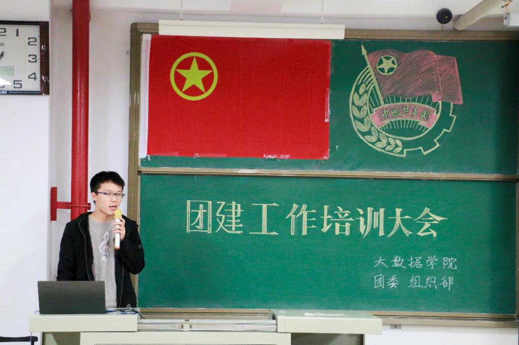 伴随着共青团团歌的奏响,大会正式开始。首先,大数据学院团委副书记王晗上台讲话。王晗学长讲到:“学院是我们的家,各位团干就是家里的栋梁,欲使家辉煌,必先塑栋梁。希望各位团干能严格要求自己,在自己的团支部中发挥先锋模范作用,带动身边同学共同进步。”并为我们介绍了团委基本情况、团务工作、主题团日活动、青志活动、五四优秀个人、先进团支部评选、青年共产主义培训学校等相关内容。使得大家对学院团委的情况有了深刻的了解。
