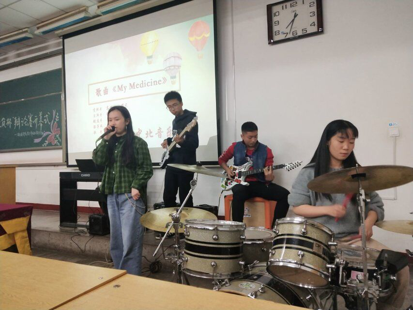 在大数据学院学生会主席刘川瑜学长热烈的致辞下,活动正式开始。本场活动不仅呈现一场精彩绝伦的辩论表演赛,在“是选择学姐还是学妹做女朋友”辩题下进行激烈的辩论外,更有“无人区玫瑰乐队”为我们带来了好听的歌曲,让在场的全体人员享受了一场视听盛宴。