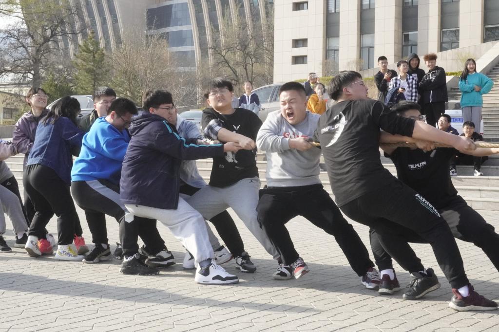 本次比赛采用“车轮战”的方式一决高下,即:两队拔河,获胜方再与下一支队伍进行较量。经过4轮激烈角逐,团委学生会其中的一支队伍队伍获得了最后的胜利。