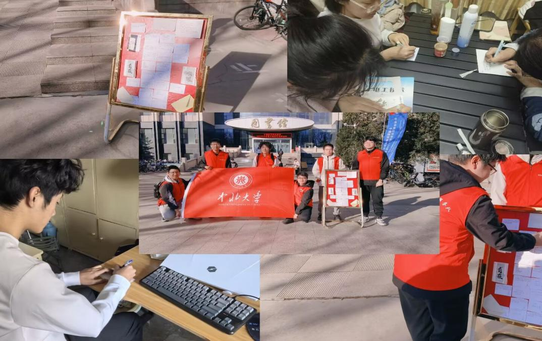 23070141青支队于12月1日组织了“汇聚青春祝福,传递考研温情”主题活动。为了给即将参加考研的学长学姐们送上温暖的祝福与鼓励,缓解他们的备考压力,同时弘扬志愿服务精神,增强校园的正能量,青支队成员们积极收集同学们对考研学长学姐的祝福,精心设计并制作了具有鼓励和温暖意味的祝福卡片。我们在图书馆处设立了“考研祝福板”,鼓励同学们写下真诚的祝福和励志语句。活动期间,许多同学积极参与,祝福板上不仅汇聚了温馨的鼓励话语,尽管备考压力很大,但在这个特殊的时期,大家并不孤单。青支队成员们通过这种方式传播了正能量,激励更多同学关心他人、帮助他人,共同创造和谐校园氛围。