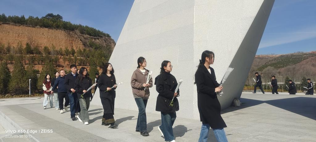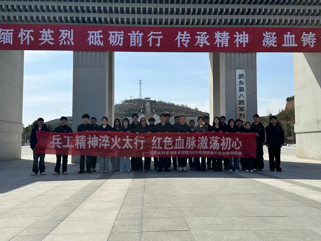 今年是抗日战争胜利80周年。为缅怀革命先烈,弘扬伟大抗战精神,计算机科学与技术学院党委副书记杨晓东带领学院辅导员、学生党员、团学骨干、习近平新时代中国特色社会主义思想大学生研习会成员等30余名师生于清明节前夕赴武乡八路军烈士陵园开展“清明祭英烈,铭记抗战魂”活动,并赴八路军总部王家峪旧址及中北大学(太行工业学校)旧址开展主题教育实践活动。以庄严之礼追思英烈,以赤子之心赓续精神血脉。