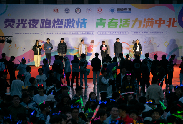 用荧光点亮校园星河,用奔跑诠释青春活力。5月23日19:00,“荧光夜跑燃激情,青春活力满中北”第七届荧光夜跑于瑾瑜国际会议中心广场隆重举行!校团委副书记王彩萍老师、计算机科学与技术学院党委副书记杨晓东老师与千余名师生齐聚一堂,用跃动的荧光和奔跑的热情点燃了校园之夜。