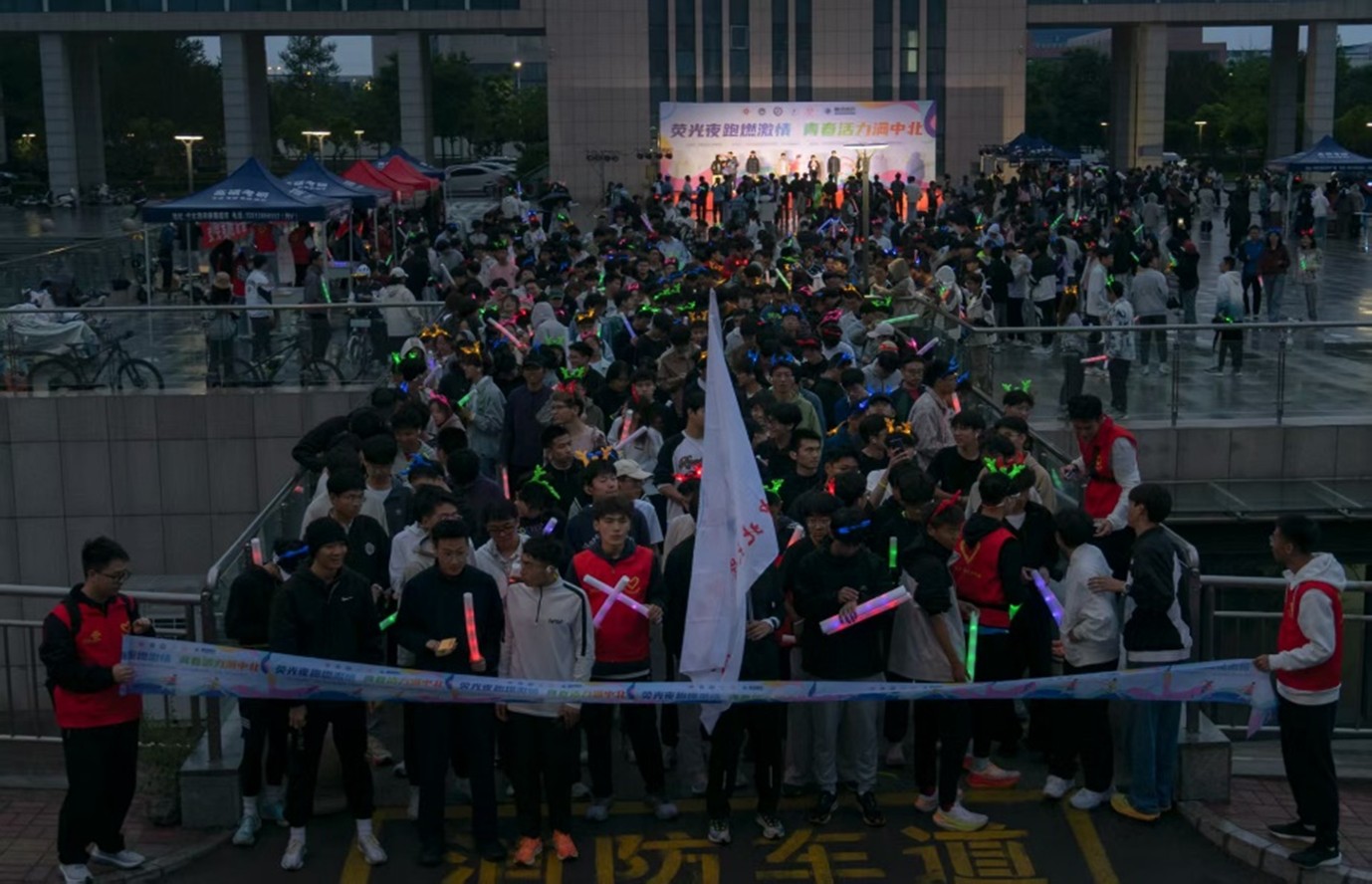 随着发令声响,千余名师生佩戴缤纷荧光装备,汇成一条璀璨流动的光河,涌向校园大道。点点荧光在夜色中跳跃闪烁,与路灯、星光交相辉映,勾勒出青春跃动的壮丽图景。跑道沿途的志愿者加油助威,光影交织间,欢声笑语与奋力奔跑的身影共同构成了中北校园最动人的夜景。