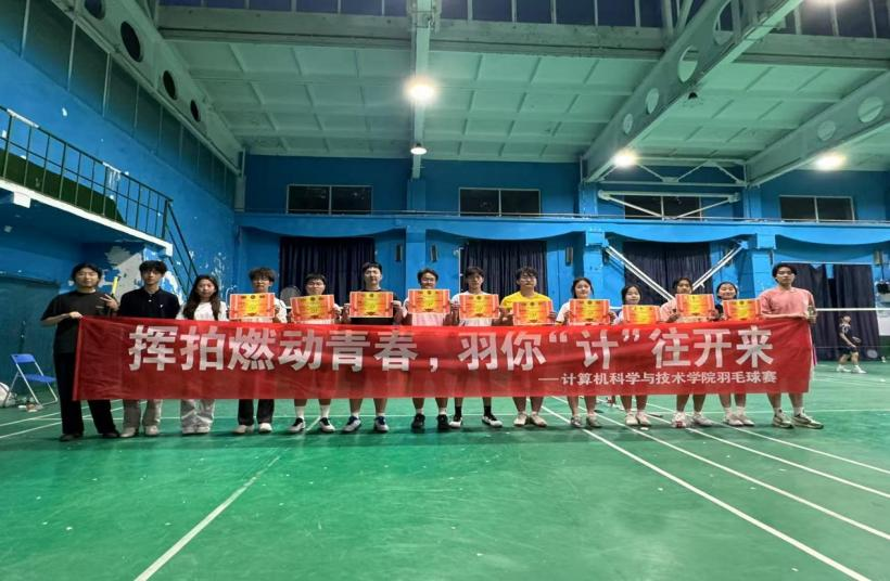 为丰富同学们的课余生活,增强学院凝聚力,展现学子青春活力,2025年5月25日,计算机科学与技术学院羽毛球比赛在羽毛球馆火热开赛。在本次赛事中,学院众多羽毛球爱好者踊跃参与,赛场上高手云集,不愧为一场精彩纷呈的运动盛宴。比赛共设男单、女单,两个项目。随着裁判一声令下,本次“辉煌杯”羽毛球比赛正式拉开帷幕。选手们迅速进入状态,发球、接球、扣杀,每一个动作都干脆利落、行云流水。